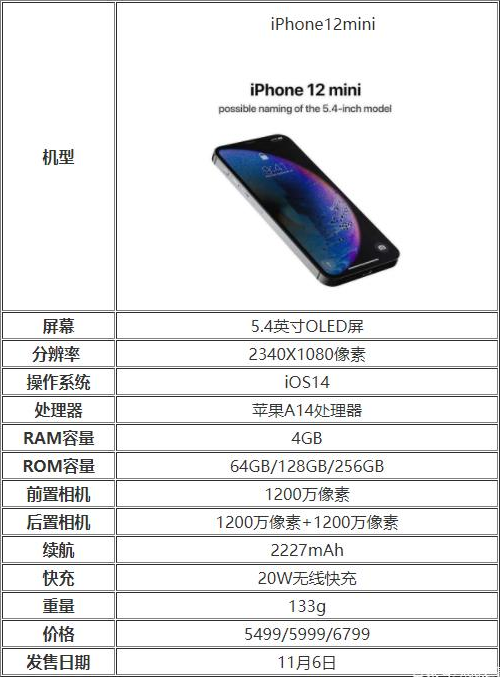 iPhone12mini配置參數表
