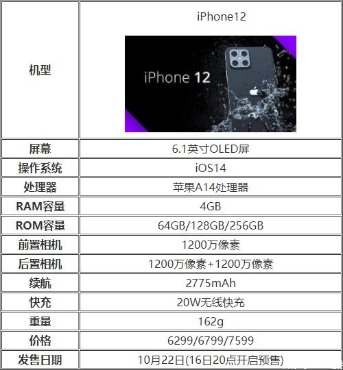 iPhone12配置參數表