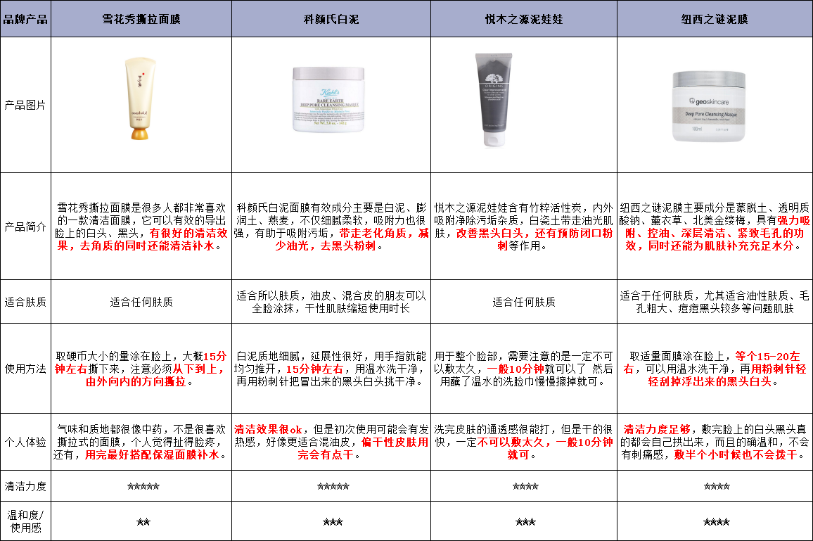 幾年前入過雪花秀撕拉面膜,對有黑頭的皮膚比較友好,用完會有臟東西粘下來,再搭配保濕面膜,效果更好。