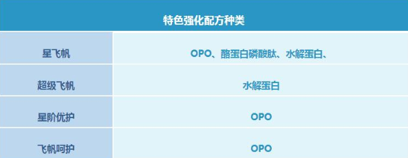 在特色強(qiáng)化配方種類方面,星飛帆添加的會比其他三類要多,而酪蛋白磷酸肽能有效促進(jìn)寶寶對鈣、鐵、鋅等二價礦物營養(yǎng)素的吸收;水解蛋白可以提高寶寶對蛋白質(zhì)的吸收。
