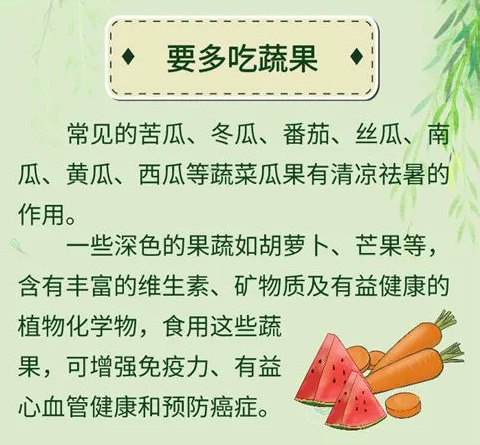 從飲食角度看,夏季飲食宜清淡,適當多吃蔬菜、瘦肉和時令水果,少吃辛辣、肥甘厚味之品。尤其咱東北地區夏季是燒烤旺季,對于燒烤一要注意飲食衛生,避免急性胃腸炎的發生;二要有所節制,避免過食肥甘而生內熱,加之環境的暑熱,內外相合而生百病。