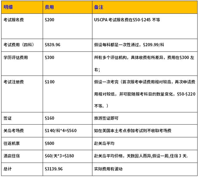 實際上美國每個州的考試費用是差不多的,報考USCPA也不完全只看費用的,選州關(guān)乎到的主要因素有學(xué)歷、學(xué)分,美國SSN,要不要申請證照等;USCPA考試的花費如下: